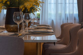 czarno-białe nowoczesną jadalnią z tabeli