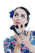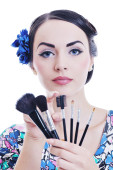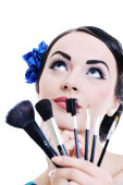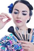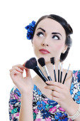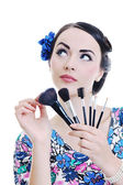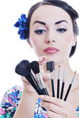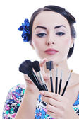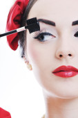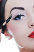 piękna młoda kobieta stosowania makijażu