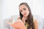 girl reading book in room