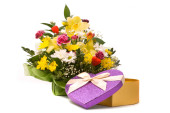 wspaniały bukiet i pudełko na biały