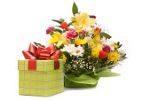 Zdjęcie "wspaniały bukiet i obecnych skrzynek na białym" może być wykorzystywane do celów osobistych i komercyjnych zgodnie z warunkami zakupionej licencji Royalty-free. Obraz jest dostępny do pobrania w jakości wysokiej rozdzielczości do 5760x3840.