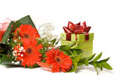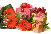 wspaniały bukiet gerbera i obecnych skrzynek na białym