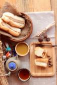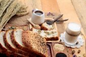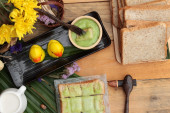Zdjęcie "Chleb z zielony krem i świeżego mleka." może być wykorzystywane do celów osobistych i komercyjnych zgodnie z warunkami zakupionej licencji Royalty-free. Obraz jest dostępny do pobrania w jakości wysokiej rozdzielczości do 5760x3840.