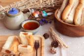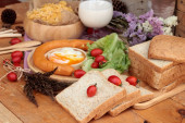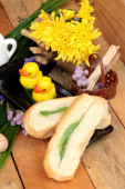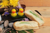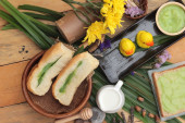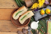 Chleb z zielony krem i świeżego mleka.