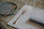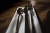 Zdjęcie "Elegancki układ srebrnej zastawy na drewnianej tacy w przytulnym otoczeniu jadalni" może być wykorzystywane do celów osobistych i komercyjnych zgodnie z warunkami zakupionej licencji Royalty-free. Obraz jest dostępny do pobrania w jakości wysokiej rozdzielczości do 5760x3840.