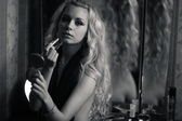 atrakcyjny młody blond długie włosy