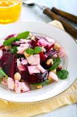 Zdjęcie "Sałatka z buraków z pecan, cebuli i zielonych" może być wykorzystywane do celów osobistych i komercyjnych zgodnie z warunkami zakupionej licencji Royalty-free. Obraz jest dostępny do pobrania w jakości wysokiej rozdzielczości do 5760x3840.