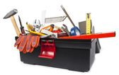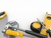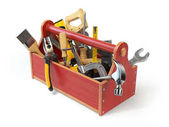 Przybornik z narzędzi. Skrewdriver, młot, piły ręcznej i klucz