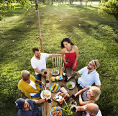 Przyjaciele jadalnia na świeżym powietrzu