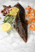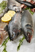 Świeże ryby z przyprawami na deska do krojenia z bliska