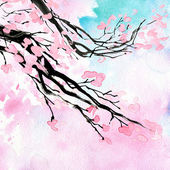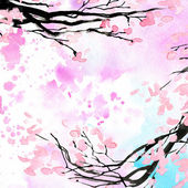 plum and leaves background. watercolor illustration