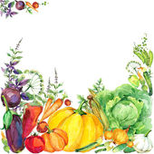 Różnorodnych surowców organicznych warzyw. akwarela ilustracja. akwarela tło warzywa i zioła