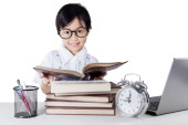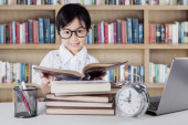 Zdjęcie "Atrakcyjny mały uczeń czytanie książek w klasie" może być wykorzystywane do celów osobistych i komercyjnych zgodnie z warunkami zakupionej licencji Royalty-free. Obraz jest dostępny do pobrania w jakości wysokiej rozdzielczości do 5760x3840.