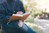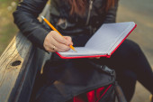 Zdjęcie "Kobieta pismo w notesie na zachodzie słońca" może być wykorzystywane do celów osobistych i komercyjnych zgodnie z warunkami zakupionej licencji Royalty-free. Obraz jest dostępny do pobrania w jakości wysokiej rozdzielczości do 5760x3840.
