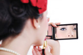 piękna młoda kobieta stosowania makijażu