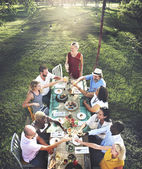 Przyjaciele jadalnia na świeżym powietrzu