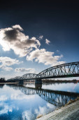 Zdjęcie "Widok dolny mostu błękitnego nad największą rzeką w Danii w pobliżu bagien dzikiej fauny i flory pomiędzy niebieską godziną a złotą godziną z odbiciem wody w moście POV" może być wykorzystywane do celów osobistych i komercyjnych zgodnie z warunkami zakupionej licencji Royalty-free. Obraz jest dostępny do pobrania w jakości wysokiej rozdzielczości do 5760x3840.