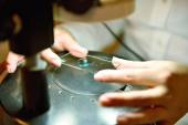 Okularysta poleruje protetyczne oko obrotowym narzędziem, zapewniając pacjentowi idealne dopasowanie i wykończenie