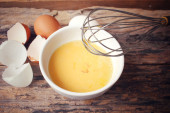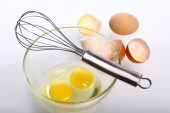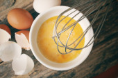 Jaja w misce z trzepaczką