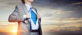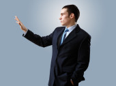 Young businessman in a blue shirt and red tie