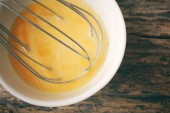 Jaja w misce z trzepaczką
