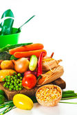 świeże warzywa i oliwy z oliwek na Starym drewnie wyblakły z o