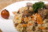 domowe tradycyjne pilaw uzbeckie podawane na talerzu