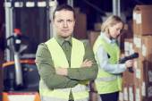 kaukaski młody robotnik w składzie