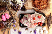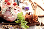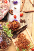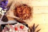 Sucha pieczona wieprzowina w paseczki i wieprzowa.