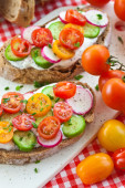 Zdjęcie "Kanapki z kremowym serem i świeże pomidory" może być wykorzystywane do celów osobistych i komercyjnych zgodnie z warunkami zakupionej licencji Royalty-free. Obraz jest dostępny do pobrania w jakości wysokiej rozdzielczości do 5760x3840.
