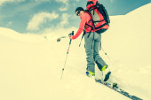 Zdjęcie "Alpinista, patrząc w dół stoku." może być wykorzystywane do celów osobistych i komercyjnych zgodnie z warunkami zakupionej licencji Royalty-free. Obraz jest dostępny do pobrania w jakości wysokiej rozdzielczości do 5760x3840.