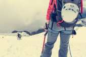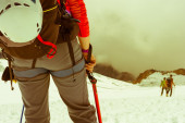 Zdjęcie "Kobiece alpinistów z widokiem." może być wykorzystywane do celów osobistych i komercyjnych zgodnie z warunkami zakupionej licencji Royalty-free. Obraz jest dostępny do pobrania w jakości wysokiej rozdzielczości do 5760x3840.