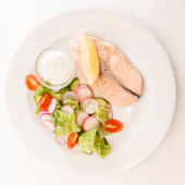 stek z łososia z sałatką