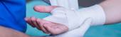 Zdjęcie "Kontuzjowanych rękę w stabilizator" może być wykorzystywane do celów osobistych i komercyjnych zgodnie z warunkami zakupionej licencji Royalty-free. Obraz jest dostępny do pobrania w jakości wysokiej rozdzielczości do 5760x3840.