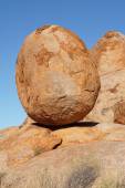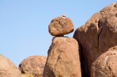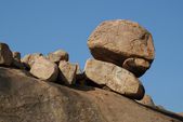 ogromny granitowy głaz wznosi się na skałach przeciw błękitne niebo