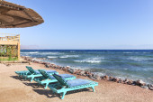 chata trzcinowa na plaży, Morze Czerwone, Synaj, Egipt