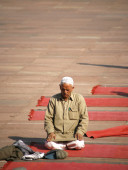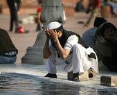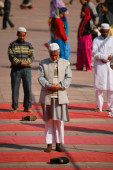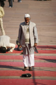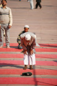 mężczyźni w czasie modlitwy w jama masjid, delhi, Indie