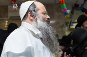 lagi pielgrzym imigrantów z brodą i payot podczas uroczystości.