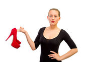 piękne, uśmiechnięte dziewczyny z czerwone buty na białym tle