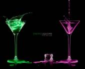 Dwa kieliszki koktajlowe duchem kolorowy napój rozpryskiwania. Apartamen