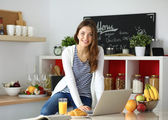 Portret pięknej kobiety trzymającej szklankę ze smacznym sokiem