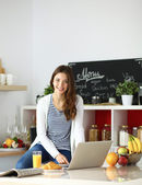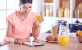 Portret pięknej kobiety trzymającej szklankę ze smacznym sokiem