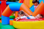 słodkie uśmiechnięte dziewczyny gry na plac zabaw dla dzieci w wieku przedszkolnym,