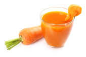 Szklanka soku z marchwi z kawałkami warzyw z warzywami na białym tle