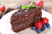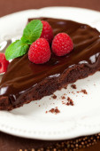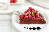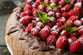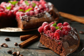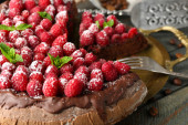 Bułka z masłem z polewą czekoladową i malin na tacę, szczelnie-do góry