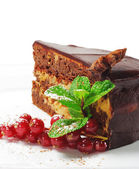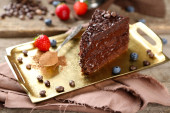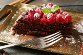Bułka z masłem z polewą czekoladową i malin na tacę, szczelnie-do góry