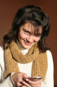portret zbliżenie ładny dziewczyna rozmowy na telefon komórkowy.