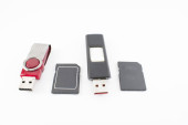 Zdjęcie "Napędy flash na białym tle, płaskie układanie" może być wykorzystywane do celów osobistych i komercyjnych zgodnie z warunkami zakupionej licencji Royalty-free. Obraz jest dostępny do pobrania w jakości wysokiej rozdzielczości do 5760x3840.