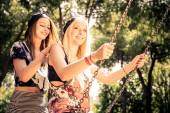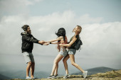 Kilka hipster, młodych ludzi w góry z deskorolki longboard