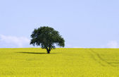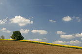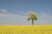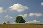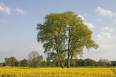 Kasztanowiec (Aesculus hippocastanum) z pola rzepaku w Bad Iburg w maju